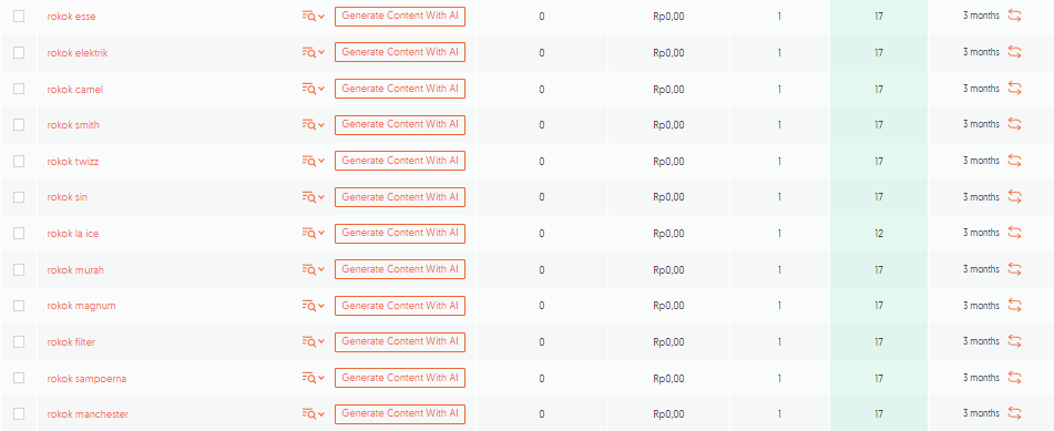 Keyword di niche tertentu seperti rokok biasanya punya search volume nol di tools SEO seperti Ubersuggest.