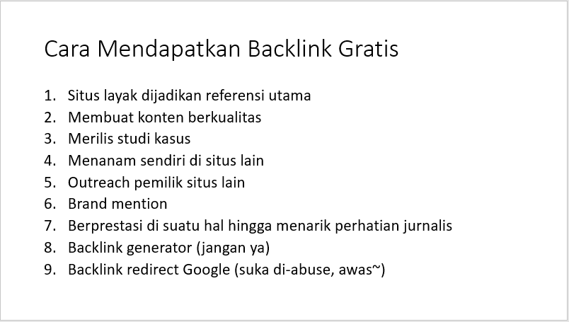 Outreach pemilik situs yang berkaitan, maka kita berpotensi mendapatkan backlink gratis.
