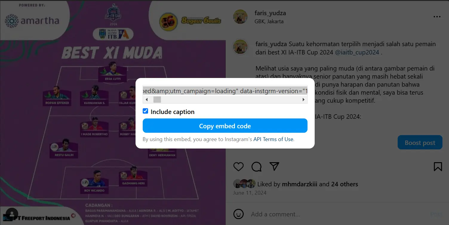 Hasilnya adalah post yang berhasil di-embed seperti di bawah ini:
