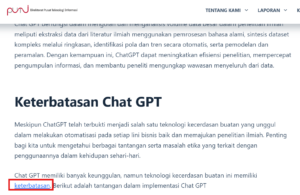 Contoh contextual backlink ada pada kotak di atas. Terlihat bahwa teks “keterbatasan” memiliki tautan. Contoh ini diambil dari website Universitas Telkom yang memberikan outbound link ke farisyudza.com, pada artikel tentang kekurangan ChatGPT.
