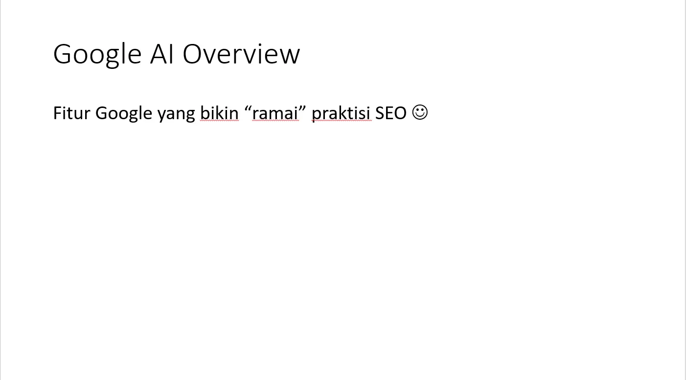 Google memiliki fitur yang sebelumnya tidak ada, yaitu Google AI overview. Jadi, jika kita mengetik kueri penelusuran, belum tentu yang muncul paling atas adalah featured snippet atau blue link, tetapi jawaban yang diberikan AI-nya Google. Contohnya adalah gambar di bawah ini: