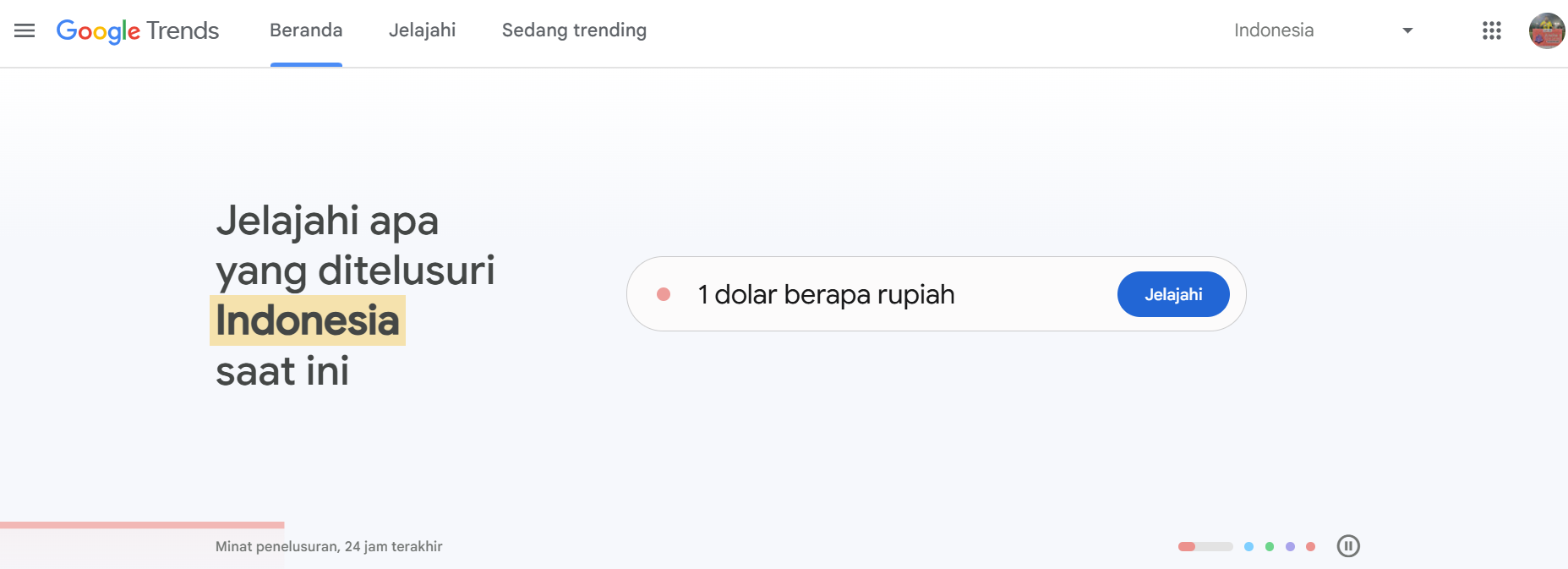 Pernah pakai Google Trend? Alat ini gratis dari Google yang sangat berguna bagi marketer atau pun jurnalis yang sedang mencari topik atau bahasan yang lagi ngetren.