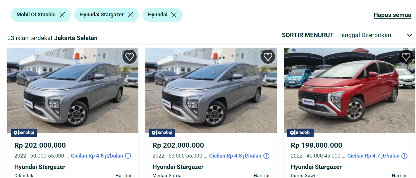 Berikut gambar yang merupakan contoh mobil Hyundai Stargazer yang ada di OLXmobbi: