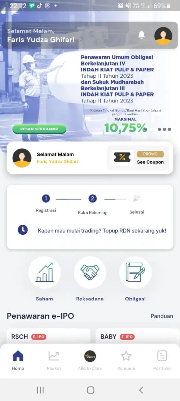 Tidak sampai sehari, rekening berhasil dibuka! Hebat sekali! Akhirnya tinggal top up dan menunggu bursa buka agar bisa beli saham.