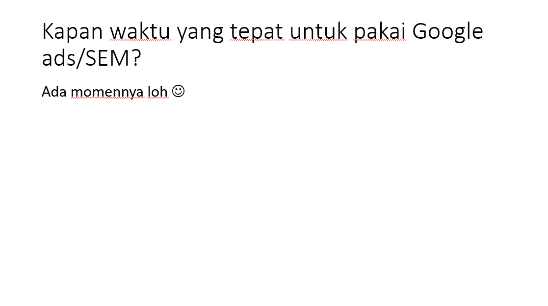 Beriklan di Google atau memakai Google ads/SEM tidak hanya untuk keren-kerenan atau sembarangan yang penting ngiklan saja. Harus ada alasan dan momen yang tepat. Mengapa pakai Google ads? Itu dulu yang harus dijawab.