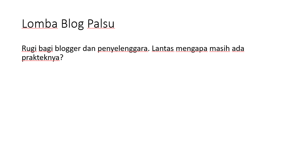 Seringkali lomba blog palsu merugikan para blogger karena mereka sudah menggunakan waktu dan energi mereka untuk membuat blog terbaik versi mereka untuk bisa juara.