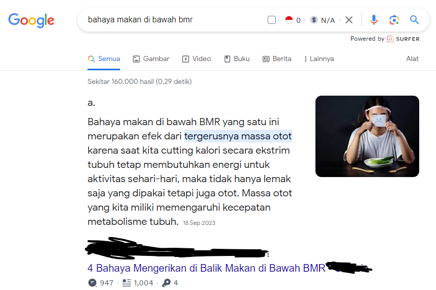Konten yang bisa menjawab search intent akan berpeluang masuk ke featured snippet Google. CTR jika sudah masuk ke sana sangatlah besar. Tinggi sekali potensi traffic-nya.