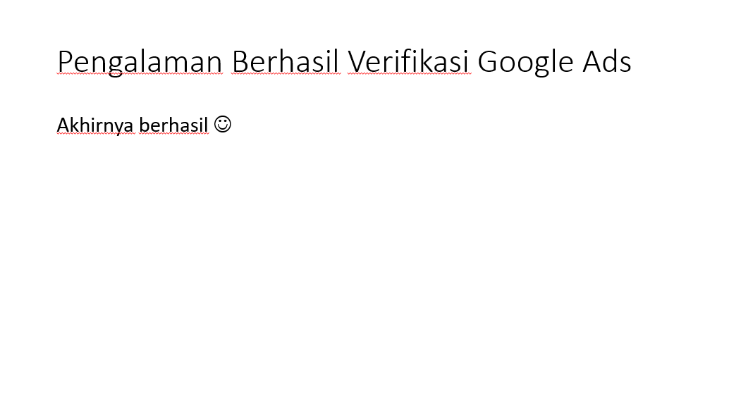 Pemilik blog ini juga sempat gagal berkali-kali dalam verifikasi Google ads karena salah menjawab. Berikut adalah pengalaman berhasil verifikasi Google ads-nya pemilik blog ini. Semoga bermanfaat.