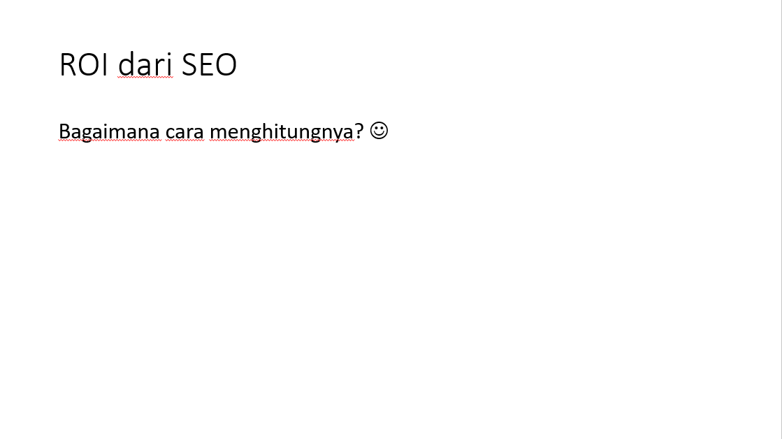 SEO adalah salah satu kanal digital marketing yang butuh uang/budget. Tentunya, dari budget yang dikeluarkan, ada ekspektasi berapa return-nya. Sayangnya, ROI atau return on investment dari SEO itu tidak bisa diukur sesimpel mengukur ROAS dari meta ads/google ads.