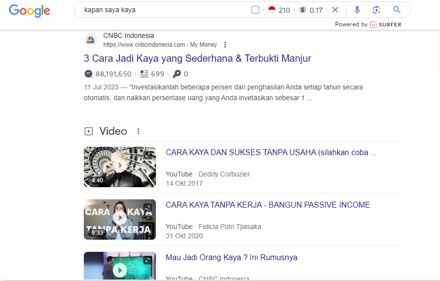 Video juga bisa ada di SERP loh! Apalagi jika kuerinya tutorial yang lebih enak ditonton langsung daripada membaca tulisan seperti praktek olahraga.