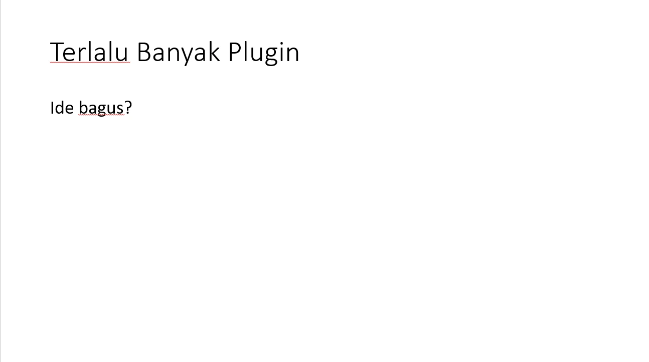 Ada banyak plugin. Bisa jadi ada yang pekerjaannya saling berkontradiksi. Konflik ini akan memunculkan eror yang tidak perlu.