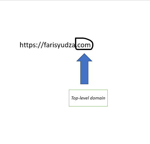 Contohnya pada domain https://farisyudza.com, .com adalah top-level domain-nya.