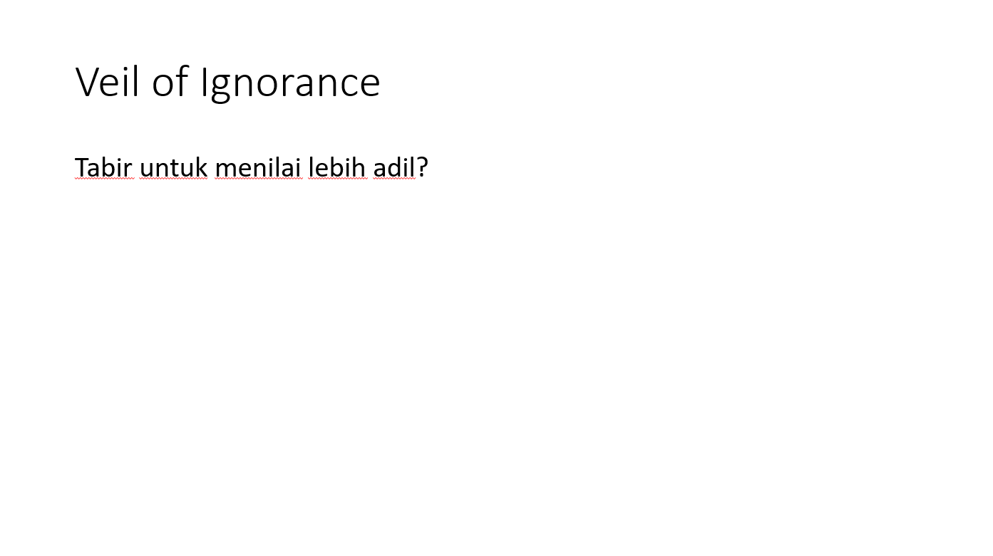 Harapannya, dengan konsep veil of ignorance, tercapai keadilan secara universal.