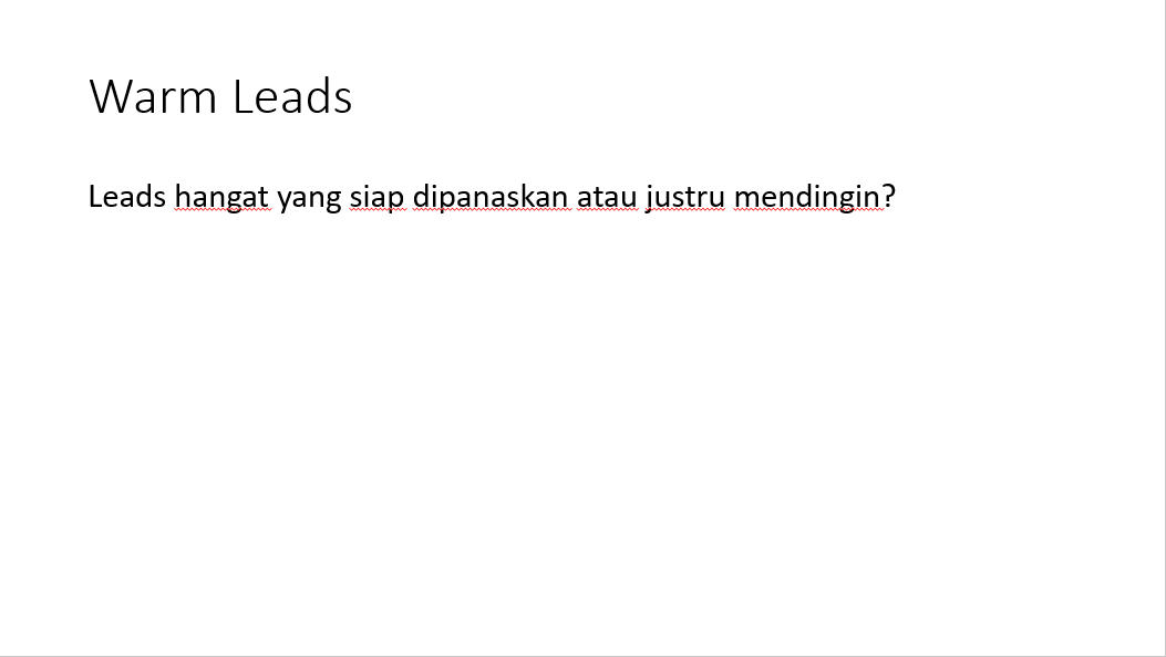 Karena warm leads ada di tengah-tengah, maka tugas kita adalah memanaskan mereka agar siap closing, bukan justru tidak perhatian hingga mereka malah jadi “dingin”.
